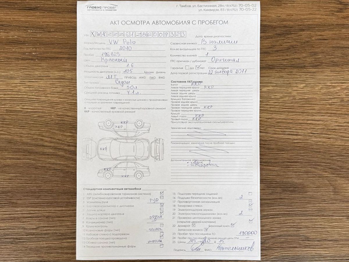 * авто не был в ДТП
